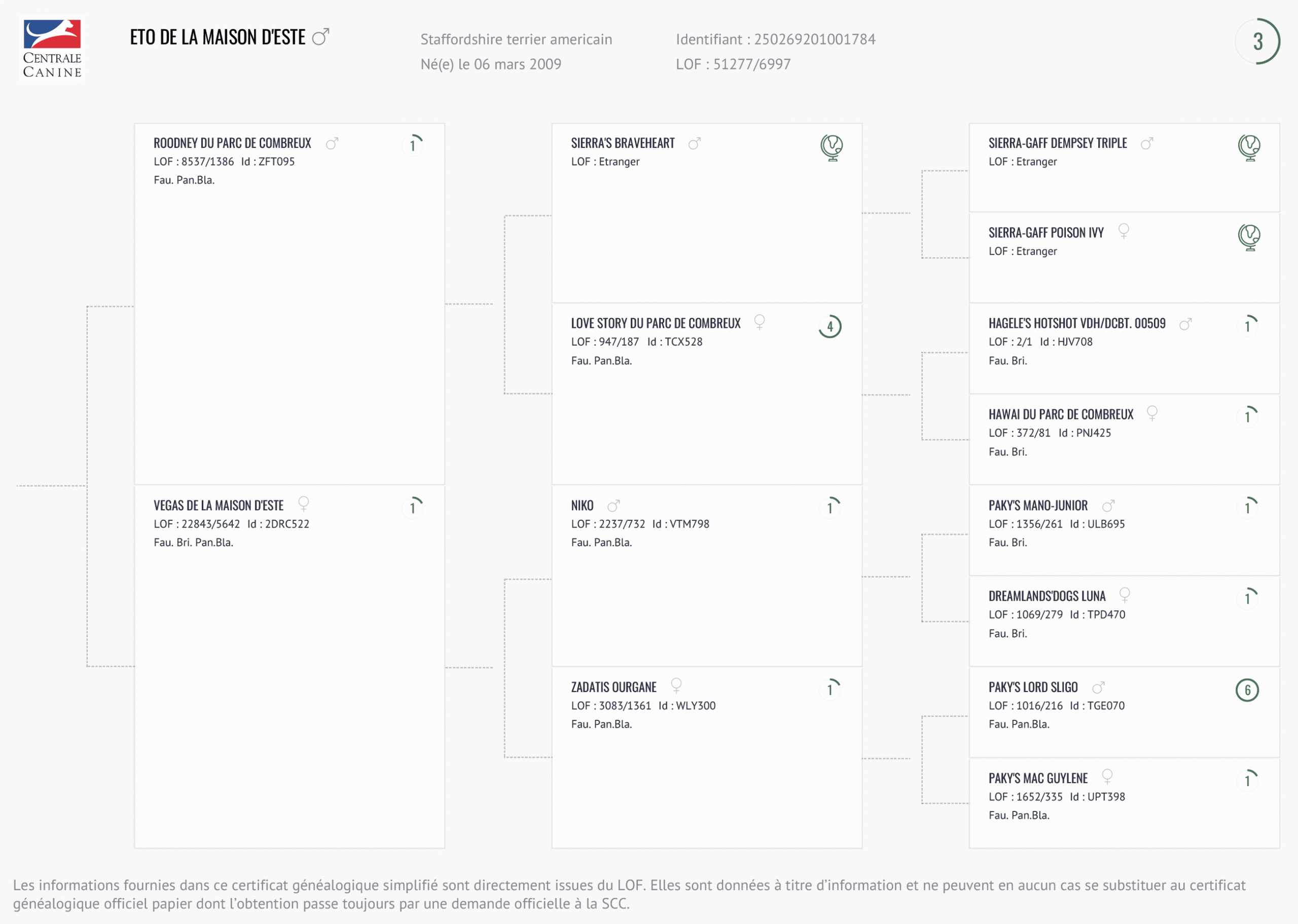 Père : Roodney du Parc de Combreux